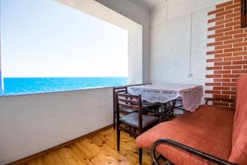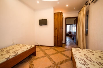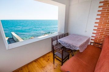 2-х комнатный. С возможностью размещения 4-x человек.Внимание!!! Был произведен ремонт в номере. Теперь вместо кухни находится комната,где расположены две кровати как на фото. Добавился балкон- лоджия с видом на море.