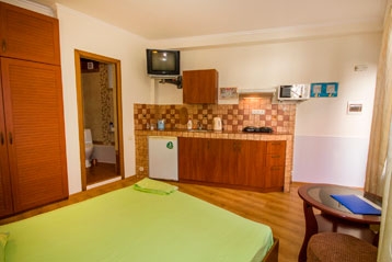 1-комнатный. С возможностью размещения 2-х человек.Отдельный вход. Дворик с обеденной зоной и видом на море.