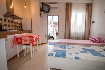 1 комн. 2 местный с кухней, телевизор, кондиционер, плита, холодильник, посуда, санузел с душевой кабинойСтоимость проживания: